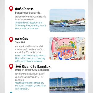 หลังจากการเที่ยวชมและถ่ายรูปสถานที่ต่าง ๆ เรียบร้อยแล้ว มัคคุเทศก์จะส่งท่านที่ ริเวอร์ ซิตี้ แบงค็อก ก็เป็นอันเสร็จสิ้นโปรแกรมทัวร์