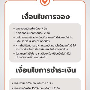 1. ชำระมัดจำ 30% ก่อนเดินทาง 5 วัน