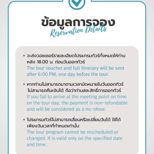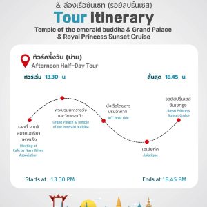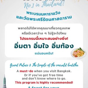 • ค่าธรรมเนียมเพิ่มเติม (ไม่รวม): ค่าเข้าชมพระบรมมหาราชวัง ชาวต่างชาติ 500 บาท / คนไทยเข้าฟรี