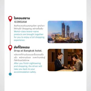 หลังจากเยี่ยมชมไอคอนสยามแล้ว ไกด์จะพาคุณไปส่งที่โรงแรมที่คุณจองไว้ ซึ่งเป็นจุดสิ้นสุดโปรแกรมทัวร์ของคุณ ขอขอบคุณที่เลือกใช้บริการของเรา และหวังว่าคุณจะมีประสบการณ์ที่ยอดเยี่ยม!