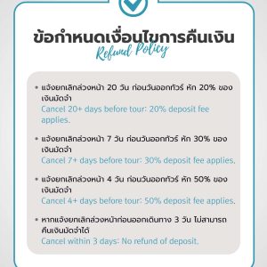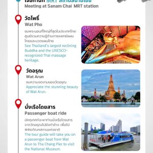 • ค่าธรรมเนียมเพิ่มเติม (ไม่รวมในทัวร์): ค่าธรรมเนียมเข้าวัดอรุณ 200 บาท(คนไทยเข้าฟรี), ค่าธรรมเนียมเข้าวัดโพธิ์ 300 บาท(คนไทยเข้าฟรี), ค่าธรรมเนียมเข้าพิพิธภัณฑสถานแห่งชาติ พระนคร 240 บาท(คนไทย 30 บาท)