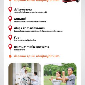 พร้อมคนขับสุภาพ มีใจบริการ และผ่านการอบรมการดูแลผู้สูงวัย รถทุกคันมีระบบความปลอดภัยครบถ้วน และสามารถรับ–ส่งถึงบ้าน ไปถึงโรงพยาบาล และส่งกลับถึงที่โดยปลอดภัย